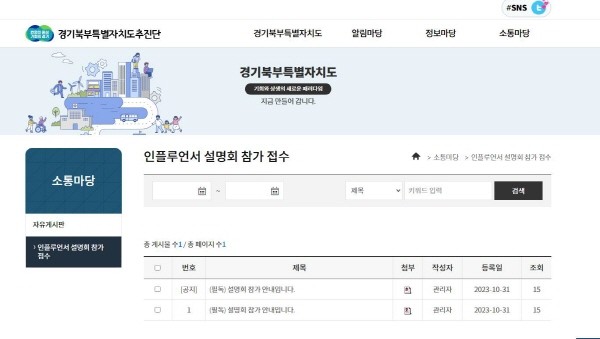 신청서는 경기북부특별자치도 누리집 우측 상단 소통마당 메뉴-영향력자(인플루언서) 설명회 참가접수 게시판에서 내려받을 수 있으며, 참가 신청도 해당 게시판에 비공개로 글을 올리면 된다.