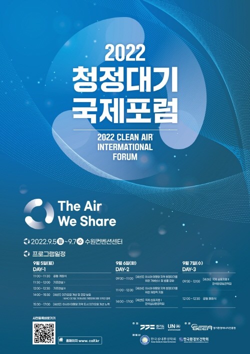 [프레스뉴스] 장현준 기자= 미세먼지 문제해결을 위해 국제기구, 아시아·태평양 정부, 학계, 도민들이 함께 머리를 맞대고 협력방안을 모색하는 국제포럼인 ‘2022 청정대기 국제포럼’이 9월 5일부터 7일까지 수원컨벤션센터에서 열린다.