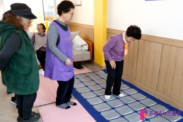 | ▲불빛을 따라 블록을 밟는 스텝 운동 매트(사진=경기도) |