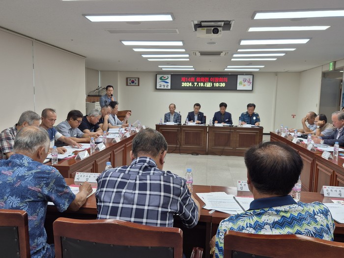 이날 회의는 (재)고성문화관광재단 임왕건 대표이사의 환영인사로 시작하여 엑스포 회장운영팀 김영성 팀장이 2024년 공룡엑스포 행사에 대해 홍보하는 시간을 가졌으며, 7월 8일 자 인사이동에 따른 전입 직원 소개 후 면장과 내빈의 인사 말씀과 당부사항 전달, 소관 담당별 행정 고지사항 전달, 소통의 시간순으로 진행했다.