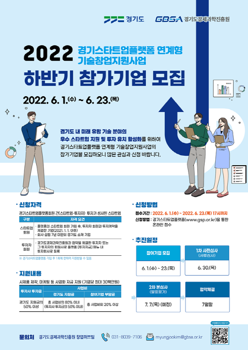 자세한 내용은 경기스타트업플랫폼을 확인하거나, 경기도경제과학진흥원 창업허브팀으로 문의하면 된다.