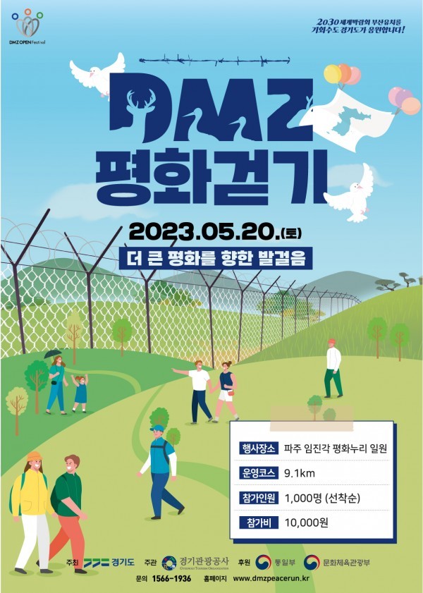 [프레스뉴스] 김대일 기자= ‘2023년 디엠지(DMZ) 평화 걷기’가 정전 70년을 맞아 5월 20일 파주 임진각 평화누리 일원에서 열린다.