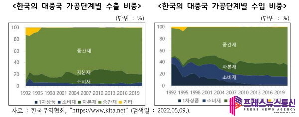 | ▲ 한국의 대중국 가공단계별 수출_수입 비중 그래픽(사진=경기연구원) |