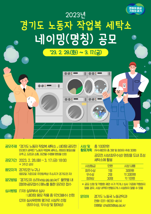 수상작은 올해 문을 열 예정인 경기도 노동자 작업복 세탁소의 명칭으로 활용된다.