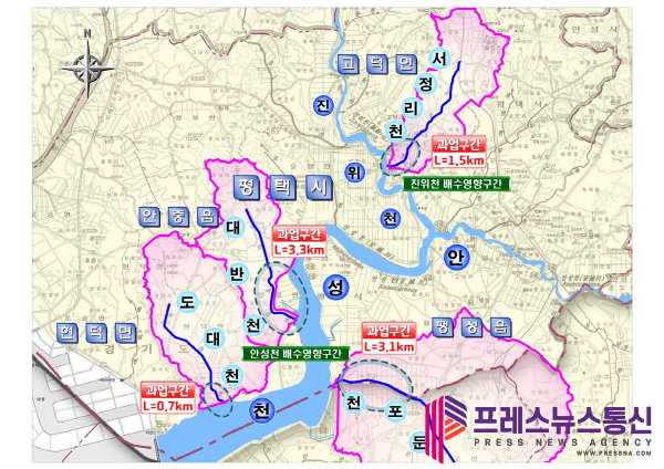 ▲ 평택시 4개 하천(대반천, 서정리천, 둔포천, 도대천) 위치도(사진=경기도북부청) |