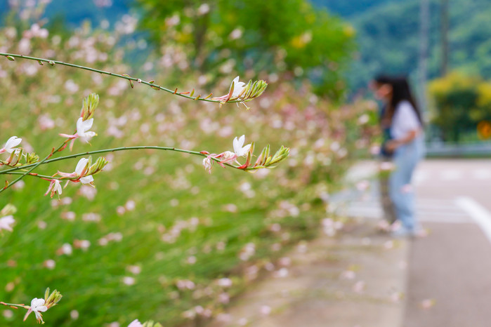 가우라꽃은 꽃 모양이 나비가 앉은 모습과 닮아 나비바늘꽃이라고도 불린다.
