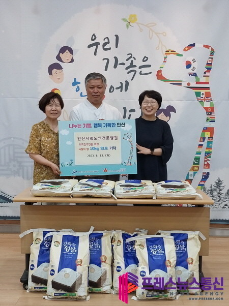 [프레스뉴스] 장현준 기자= 안산시(시장 이민근)는 지난 13일 안산시립노인전문병원(병원장 이진호)으로부터 생활이 어려운 외국인 주민을 위한 쌀 81포(포대 당 10kg)를 기탁 받았다고 14일 밝혔다.