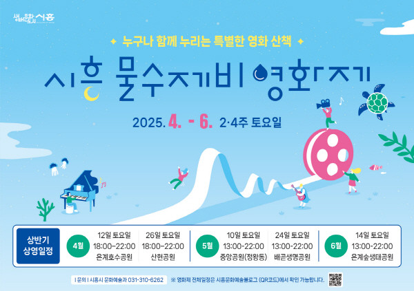 [프레스뉴스] 장현준 기자= 시흥시(시장 임병택)는 4월 12일부터 6월 14일까지 약 3개월간 ‘시흥 물수제비 영화제’를 개최한다. 이번 영화제는 은계호수공원을 시작으로 시 전역을 권역별로 순회하며 누구나 무료로 관람할 수 있도록 진행된다.