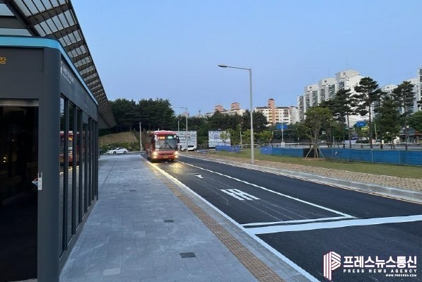 이에 따라 시는 4월 22일부터 6월 2일까지 공사를 진행했다. 공사 기간에는 안전사고 예방을 위해 기존 버스 정류소를 폐쇄하고 임시 버스 정류소를 운영했다. 이번 개선 사업에서는 기존 보도의 폭을 2m에서 5m로 확장해 버스 승하차객의 보행환경을 개선했고, 크랙 및 도로 파임(포트홀) 등으로 인해 버스 주행이 어려웠던 차도의 전면 재포장, 완충녹지 측 보도 공간 확충도 함께 진행했다.