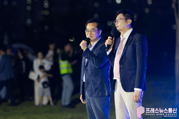 이날 행사에는 1천200대 규모의 드론 라이트쇼가 펼쳐졌다. 수많은 드론이 밤하늘에 떠서 경기도의 미래모빌리티 비전 ‘미래 모빌리티 산업 육성 및 생태계 조성’ 등 주요 도정 메시지를 제시했다.