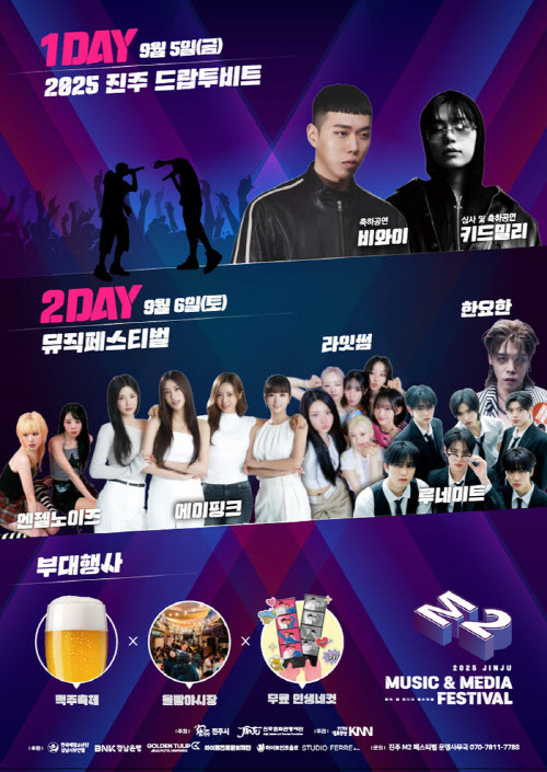 조규일 진주시장은 “M2페스티벌은 뮤직과 미디어를 함께 즐길 수 있는 청년 맞춤형 축제로, 한여름 밤의 더위를 잊게 할 무대가 될 것”이라며 “8~9월 진주에서만 즐길 수 있는 다양한 콘텐츠를 시민과 관광객 모두 마음껏 누려 달라”고 말했다.