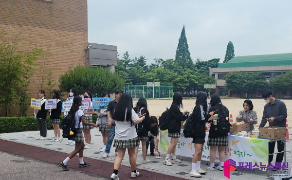지난 8일 등굣길에 실시한 이번 캠페인은 맞벌이 가정 증가, 보호자 부재 등으로 아침 결식률이 높아짐에 따라 청소년들의 건강한 성장과 학습효과 증진을 위해 마련됐다.
