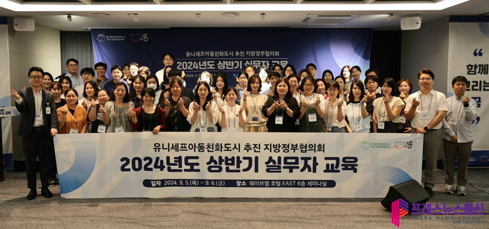 [프레스뉴스] 장현준 기자= 유니세프아동친화도시 추진 지방정부협의회(회장 임병택)가 시흥시 거북섬 웨이브엠 호텔에서 지난 5일과 6일에 걸쳐 1박 2일간 ‘2024년도 상반기 실무자 교육’과 ‘국내외 아동 기금 전달식’을 진행했다.