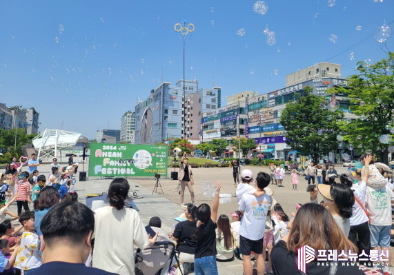 | ▲가정의 날 행사 2024 안산페밀리페스티벌(AFF) 버블쑈 장면(사진=안산시) |