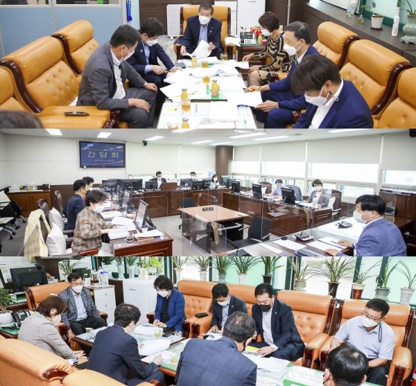 | ▲ 안산시의회 3개 상임위원회가 6일 안산시 집행부와 간담회를 개최했다. 사진 위쪽부터 기획행정위원회와 문화복지위원회, 도시환경위원회가 이날 간담회를 진행하는 모습. (사진=안산시의회) |