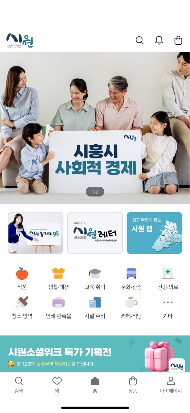 지난 2월 3일에 출시된 ‘시원’ 앱에서는 시흥시 사회적경제 기업의 제품과 서비스를 구매할 수 있을 뿐만 아니라, 사회적경제 기업의 위치 확인을 도와주는 시원 맵, 사회적경제 소식을 제공하는 뉴스레터 기능 등을 통해 관내 사회적경제 정보를 한눈에 볼 수 있도록 구성됐다.