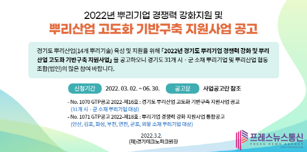 ‘뿌리산업 고도화 기반 구축 지원사업’은 도내 뿌리산업 기업들의 생산성 향상과 판로개척, 경쟁력 강화 등을 도모하고자 경기도와 경기테크노파크(경기TP)가 추진하는 사업이다.
