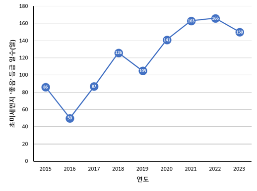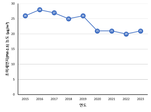 ‘좋음’ 등급(15μg/㎥ 이하)’ 일수 150일, 2022년보다 16일 감소