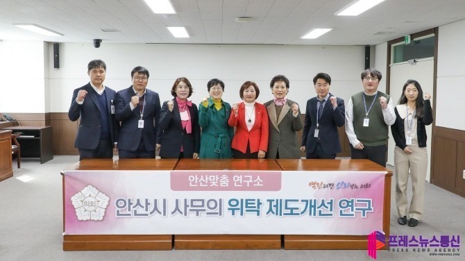 시 사무 위탁 제도의 개선 방안을 연구하는 것이 목적인 안산맞춤 연구소에는 현옥순 대표 의원과 이진분 박은경 이대구 김유숙 의원이 참여하고 있으며, 의원들은 이 자리에서 시 위탁 사무 규정의 미비점과 불합리한 점은 없는지 점검해 행정의 법적 안정성을 확보하겠다는 뜻을 밝혔다.