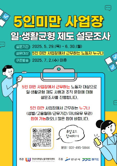 ▲5인미만 사업장 일·생활균형 제도 설문조사 포스터(사진=안산시) |
