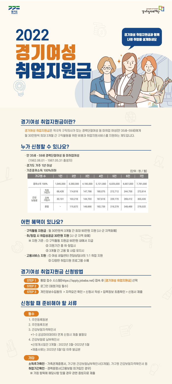 | ▲2022 경기여성 취업지원금 포스터(사진=경기도일자리재단) |