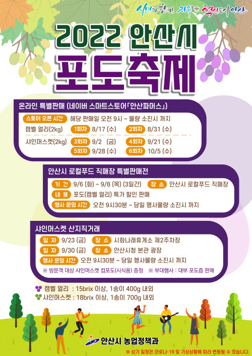 이와 함께 안산시 로컬푸드직매장에서는 9월 6~8일까지 3일 동안 ‘안산포도 특별기획전’을 운영한다.