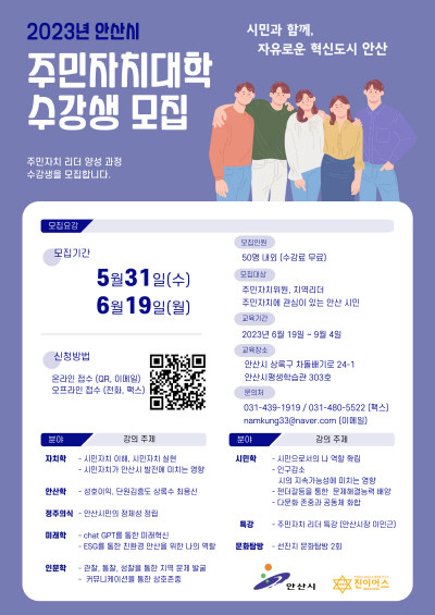| ▲ 2023년 안산시 주민자치대학 수강생 모집 포스터(사진=안산시) |