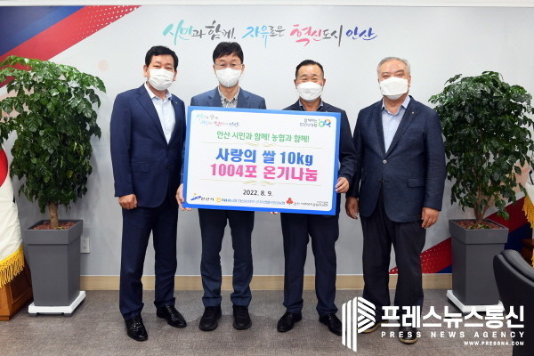 [프레스뉴스] 장현준 기자= 안산시(시장 이민근)는 NH농협 안산시지부(지부장 김근창)와 지역농협조합 군자농협(조합장 조인선), 반월농협(조합장 최기호), 안산농협(조합장 박경식)으로부터 사랑의 쌀 1천4포(포대당 10㎏)를 기탁 받았다고 10일 밝혔다.