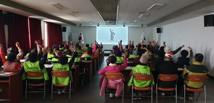 이번 교육은 노인일자리 사업 참여자들이 쉽게 이해할 수 있도록 ppt영상을 활용해 실시했으며, 특히 혹한기 노인일자리 사업 활동 시 지켜야할 안전수칙을 안내하는 등 안전사고 예방에 중점을 뒀다.