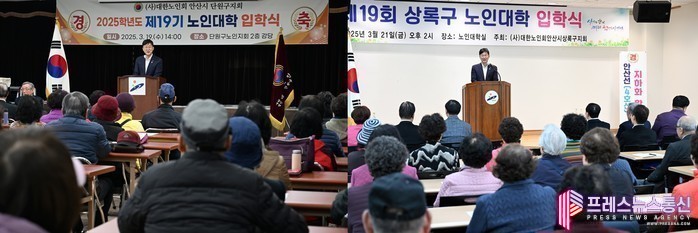 [프레스뉴스] 장현준 기자= 안산시(시장 이민근)는 지난 19일과 21일 이틀에 걸쳐 제19회 상록구·단원구 노인대학 입학식이 진행됐다고 22일 밝혔다.