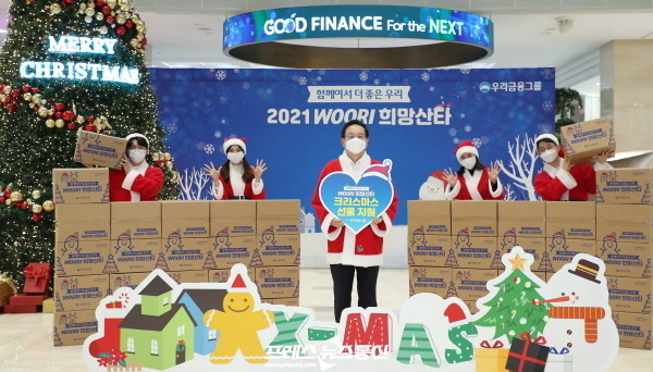 [프레스뉴스] 김대일 기자= 우리금융그룹(회장 손태승)은 지난 21일 서울 중구 소재 우리금융그룹 본사에서 손태승 우리금융그룹 회장이 참석한 가운데 2021년 「함께여서 더 좋은 우리, WOORI 희망산타」 캠페인을 진행했다고 22일 밝혔다.