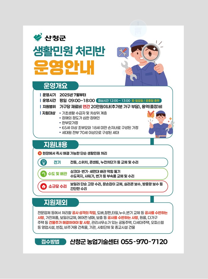 ▲산청군 생활민원처리반 운영안내(사진=산청군) |