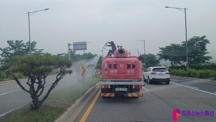 ▲병해충 방제약제 살포 현장(사진=시흥시) |