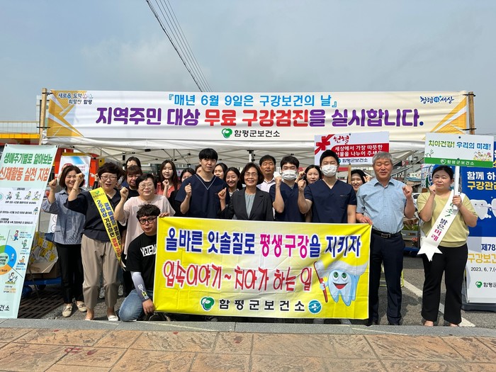 | ▲보건소 관계자들이 구강보건의 날 캠페인을 하고 있다.(사진제공=함평군) |