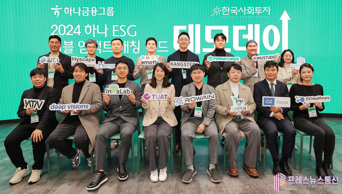 [프레스뉴스] 류현주 기자= 하나금융그룹(회장 함영주)은 지난 26일, 서울 강남구 소재 코엑스 스튜디오 159에서 『하나 ESG 더블임팩트 매칭펀드』 데모데이를 성공적으로 개최했다고 밝혔다.