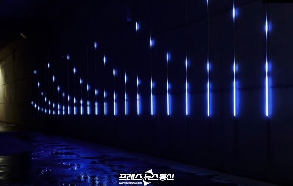 김성필 작가의 ‘평화의 메아리’는 평화를 바라는 목소리의 간절한 울림을 LED 조명으로 구현한 작품으로, 지하차도라는 설치 장소의 특성을 잘 살렸다는 점에서 호평을 얻었다.