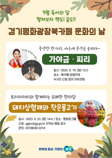 [프레스뉴스] 김대일 기자= 경기도는 독서의 계절을 맞아 ‘펼쳐보자 책도, 꿈도’라는 표어와 함께 경기평화광장 북카페에서 9월 19일과 23일 문화의 날 행사를 한다.