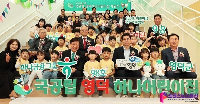 [프레스뉴스] 류현주 기자= 하나금융그룹(회장 함영주)은 지난 17일 경상북도 영덕군과 민관 협력으로 공동 추진한 ‘국공립 영덕하나어린이집’을 개원했다고 밝혔다.