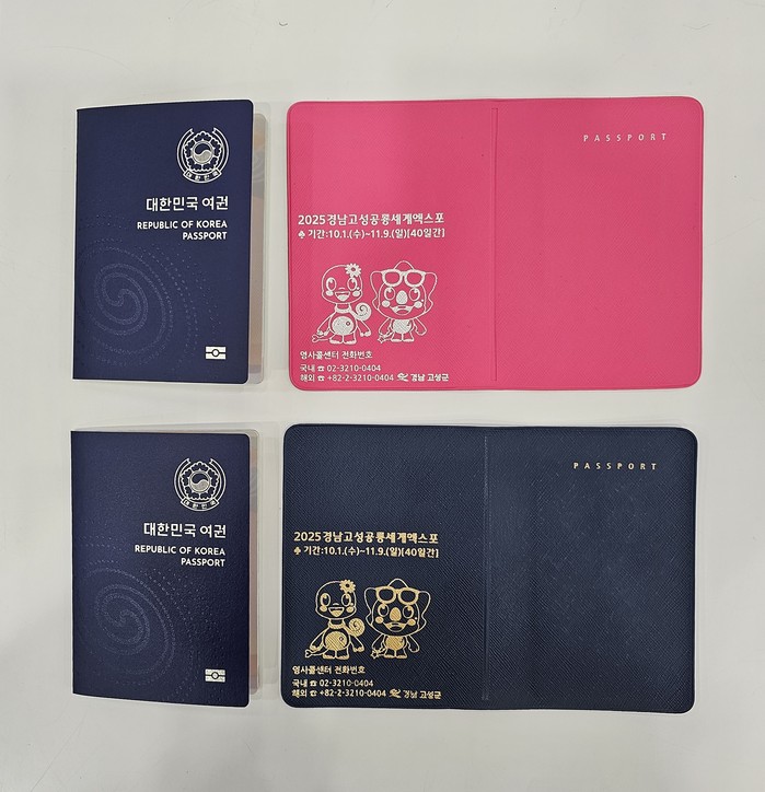 | ▲고성군이 여권 민원인의 편의 증진과 2025경남고성공룡엑스포 홍보를 위해 여권 케이스를 제작했다. (사진=고성군) |