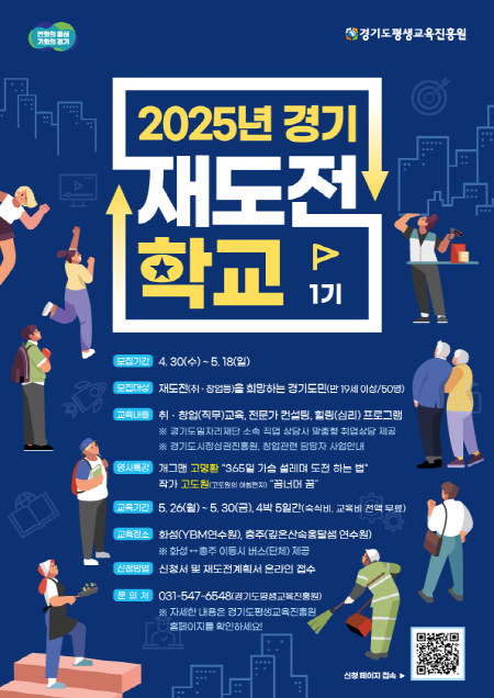 작년 경기재도전학교의 성공에 이어, 올해는 4기수까지 확대 모집한다. 힐링과 심리치유를 강화한 교육으로 4박 5일간 진행되며, 교육은 전액 무료이다. 특히 올해부터는 경기도일자리재단과 경기도시장상권진흥원과의 협업을 통해 취업 상담과 창업 지원 연계도 함께 제공된다. 참여 신청은 오는 18일까지 경기도평생교육진흥원 누리집(gill.or.kr)에서 할 수 있다.
