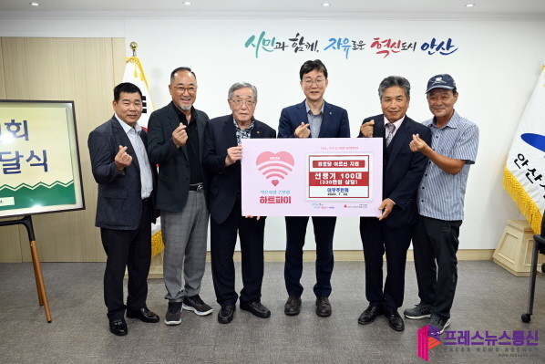 [프레스뉴스] 장현준 기자= 안산시(시장 이민근)는 지난 22일 대부주민회(위원장 김오봉)로부터 무더운 여름철 지역 경로당 어르신들을 위한 선풍기 100대(시가 3백3십만 원 상당)를 기탁받았다고 23일 밝혔다.