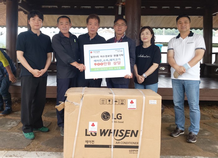 29일 손불면에 따르면 김정철 대표가 지난 28일 월천4리 경로당에 스탠드‧벽걸이 에어컨, 소파, 돼지고기 등을 전달했다.