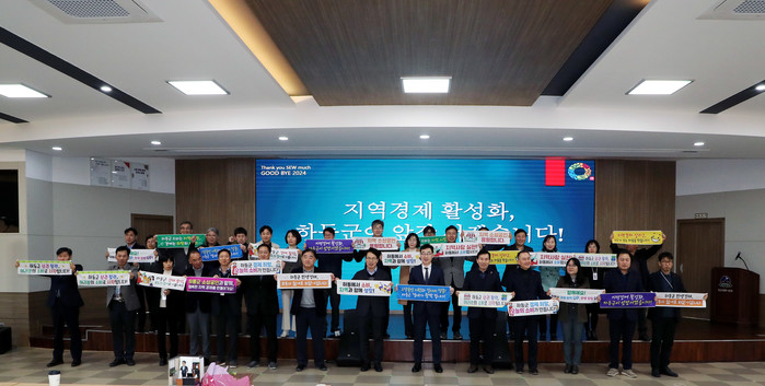 | ▲하동군은 지난 2024년 12월 31일 오후 3시 하동군청 대회의실에서 종무식 및 시무식을 「민생경제 활성화 대책회의」로 대체하며 지역 경제 회복을 위한 결의를 다졌다. (사진=하동군) |