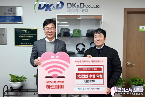 | ▲ ㈜디케이앤디, 지역사회를 위해 후원금 3천만 원 기탁(사진 왼쪽부터 이민근 안산시장, 최민석 ㈜디케이앤디 대표이사)사진=안산시 |