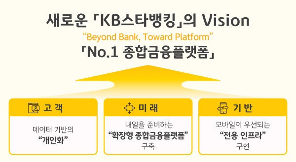 이와 관련하여 “새로운 ‘KB 스타뱅킹’은 계열사마다 가지고 있는 핵심서비스를 하나의 앱으로 제공하여 그룹의 Hub 역할을 수행하는 확장형 종합금융플랫폼으로서 계열사의 대표 핵심서비스를 추가 앱설치나 앱에서의 이탈 없이 사용할 수 있을 뿐만 아니라 정부24, 홈택스 등 외부채널과도 끊김 없이 연결되는 유연한 플랫폼 기반을 갖추는 한편, 데이터 기반의 개인화 서비스를 제공하여 고객 Engagement를 강화함으로써 고객가치를 제고하고자 한다”고 강조하였다.