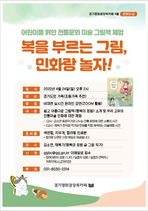 [프레스뉴스] 강보선 기자= 경기평화광장 북카페가 그림책을 통해 작가와 소통하며 전통문화를 체험하고 독서 의욕을 고취하는 프로그램을 준비했다.