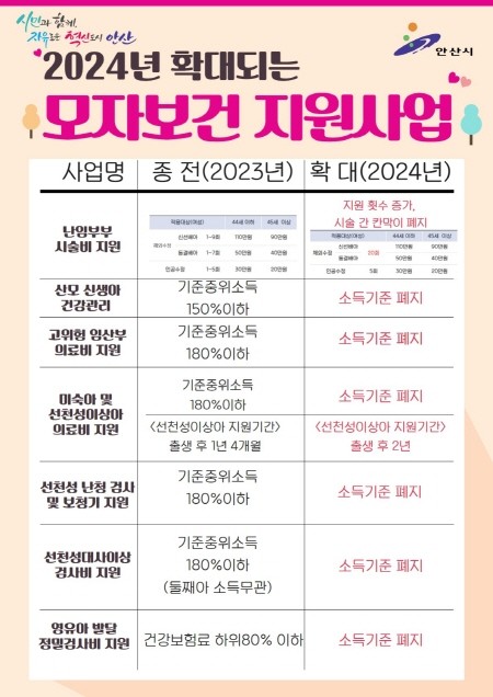 | ▲ 2024년 확대되는 모자보건 지원사업 홍보 포스터(사진=안산시) |