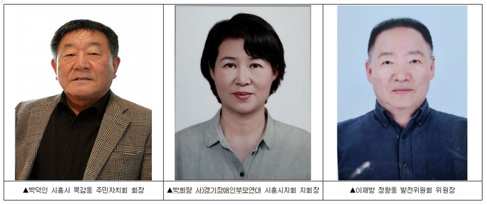 [프레스뉴스] 장현준 기자= 시흥시(시장 임병택)가 2025년 시민대상 수상자로 ‘박덕인(시흥시 목감동 주민자치회 회장), 박희량(사)경기장애인부모연대 시흥시지회 지회장), 이재방(정왕동 발전위원회 위원장)’ 3인을 선정했다(가나다 순).