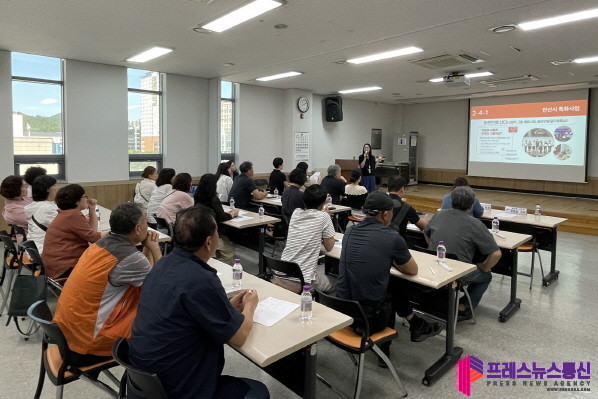 | ▲안산시 관계자가 지난 11일 효돈동 지역사회보장협의체위원들을 대상으로 특화사업을 소개하고 있다.(사진=안산시) |