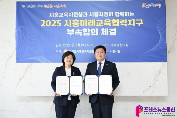 [프레스뉴스] 장현준 기자= 시흥시(시장 임병택)와 시흥교육지원청(교육장 채열희)은 지난 18일 거북섬 일원에서 ‘2025년 시흥미래교육협력지구 사업’ 추진을 위한 부속 합의를 체결했다.